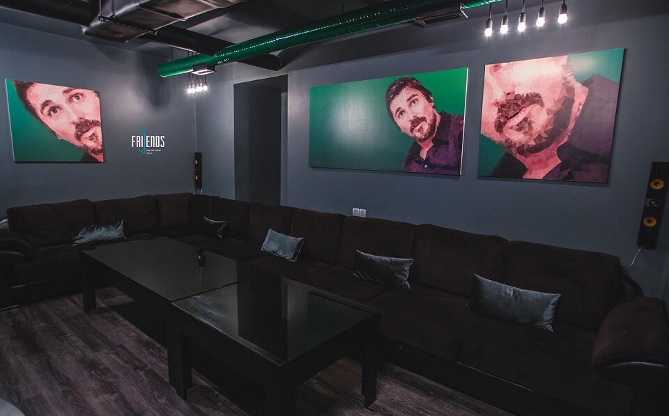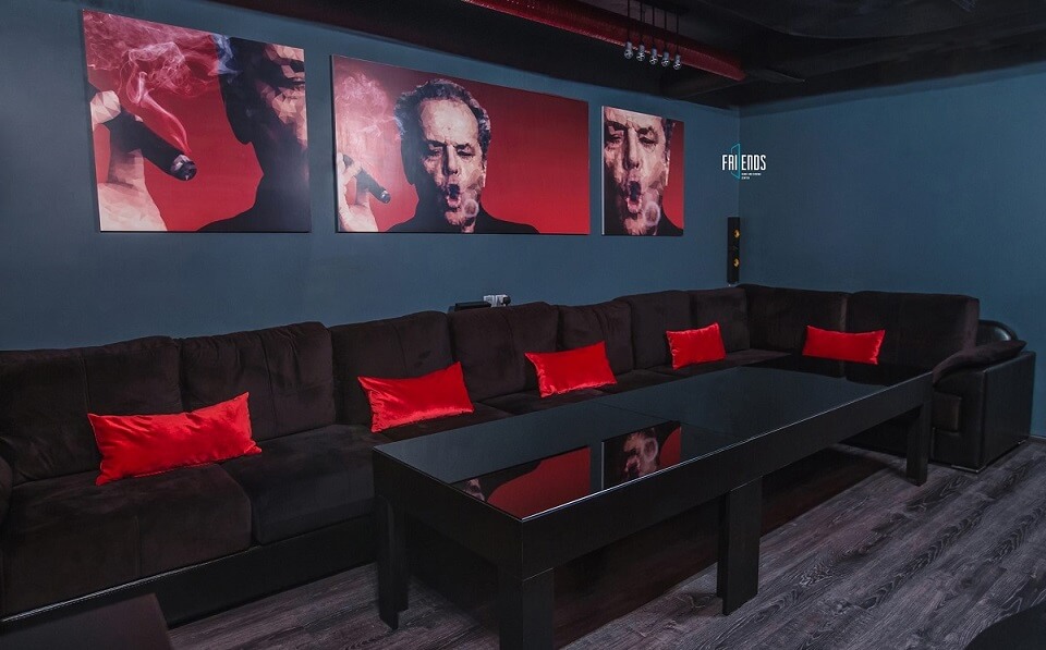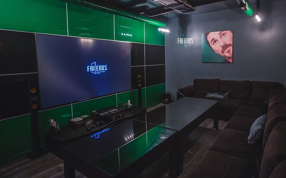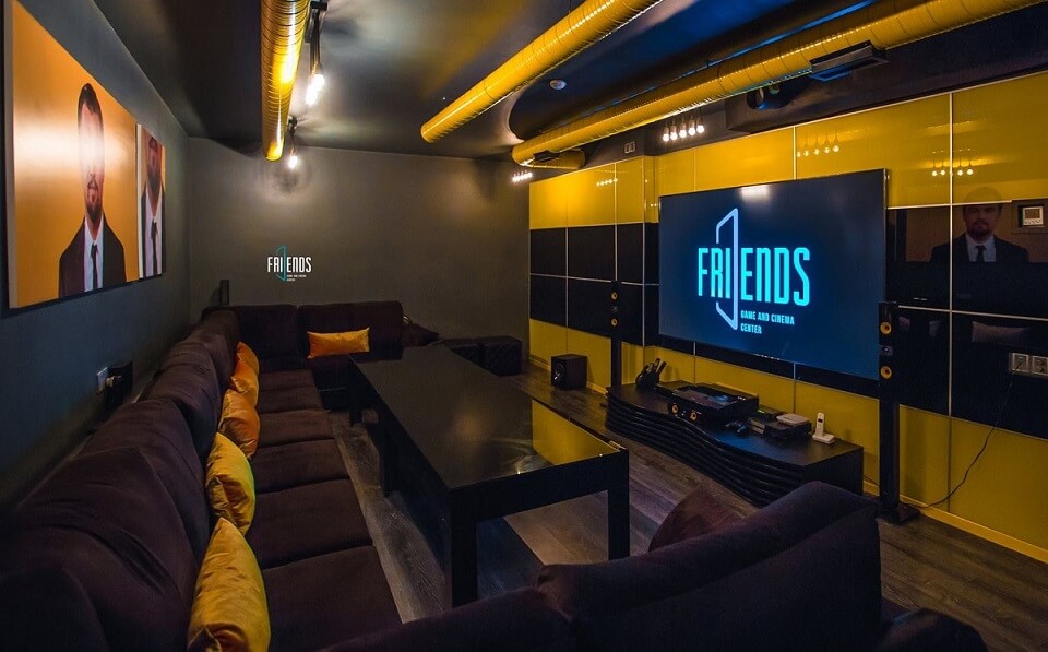 Все кабинеты в Friends Cinema & Lounge отличаются своеобразной тематикой друг от друга. В каждом кабинете есть уютные диванчики с журнальными столиками, широкие экраны, Playstation и wi-fi. Кабинеты выполнены в разном дизайне, каждый из которых создает атмосферу тепла и уюта.